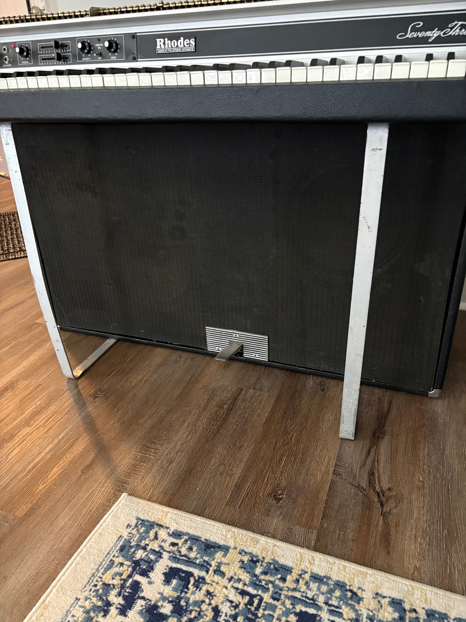 From the seller: “Vintage 1980 Rhodes Mark II Suitcase piano with the speaker cabinet