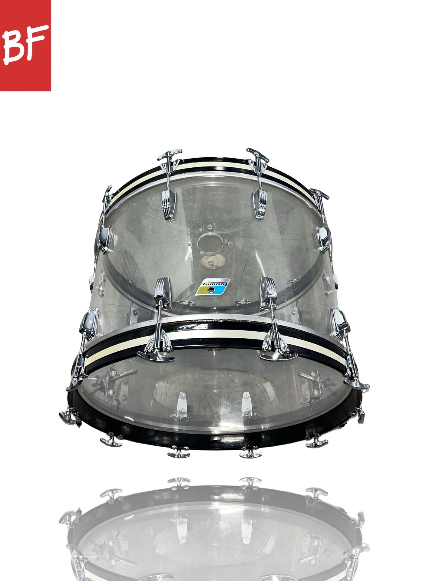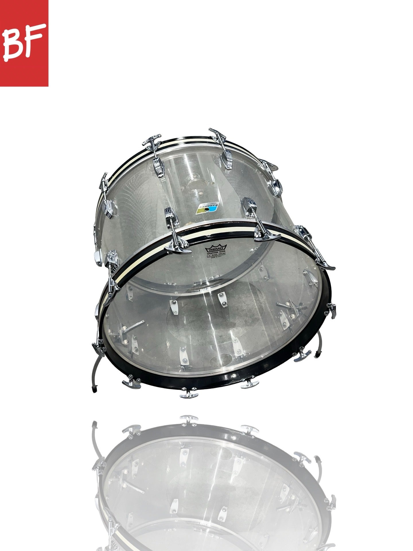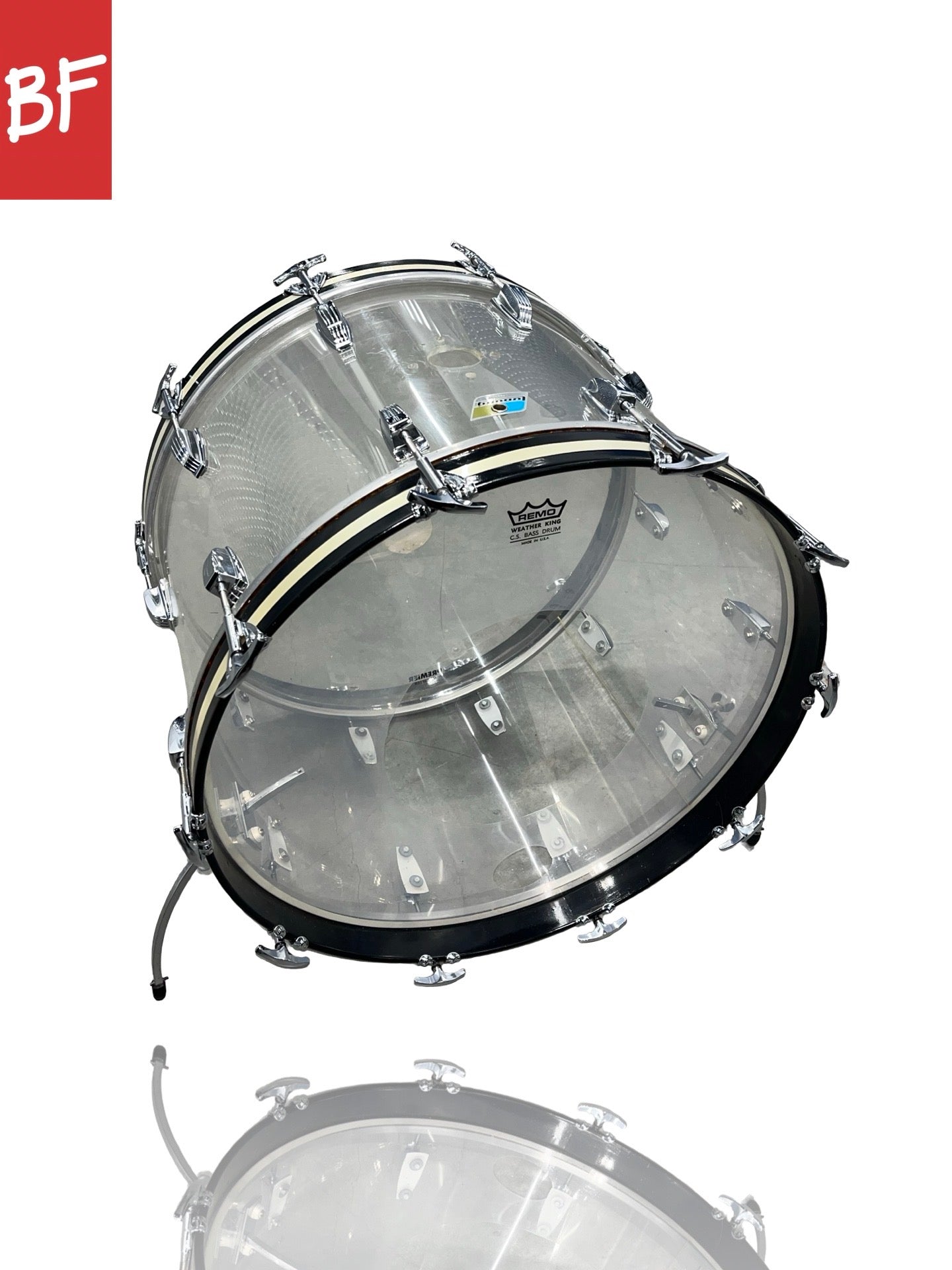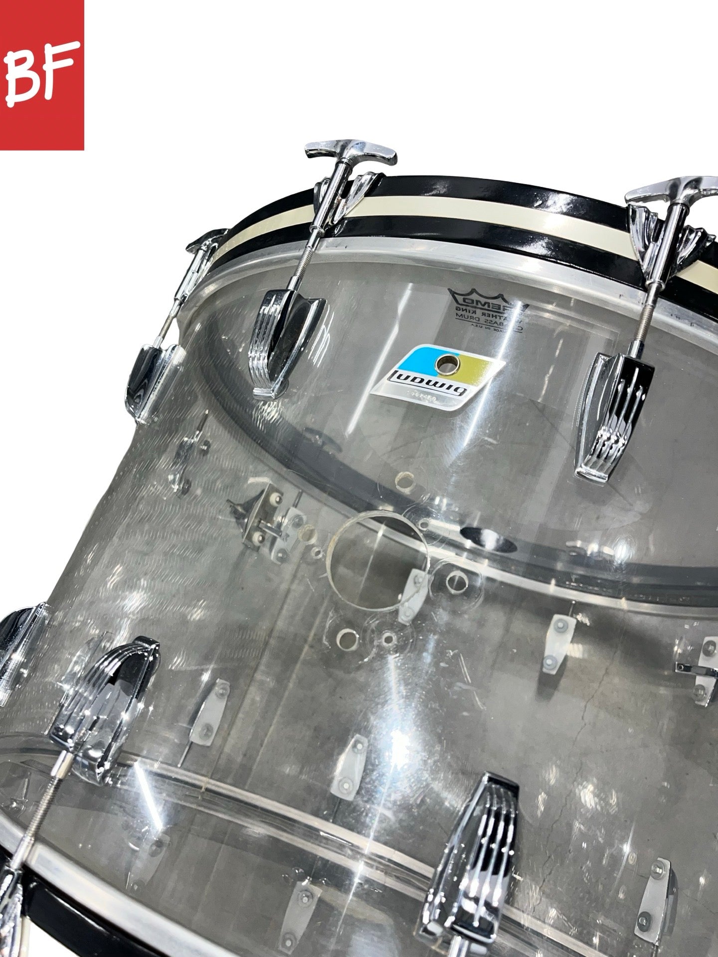 Very good condition! Made in USA. 14x22. Clear Vistalite color. Missing original tom mount and has 2 small extra holes in same area from different tom mount. Classic amazing sounding Ludwig Vistalite! Includes soft case.