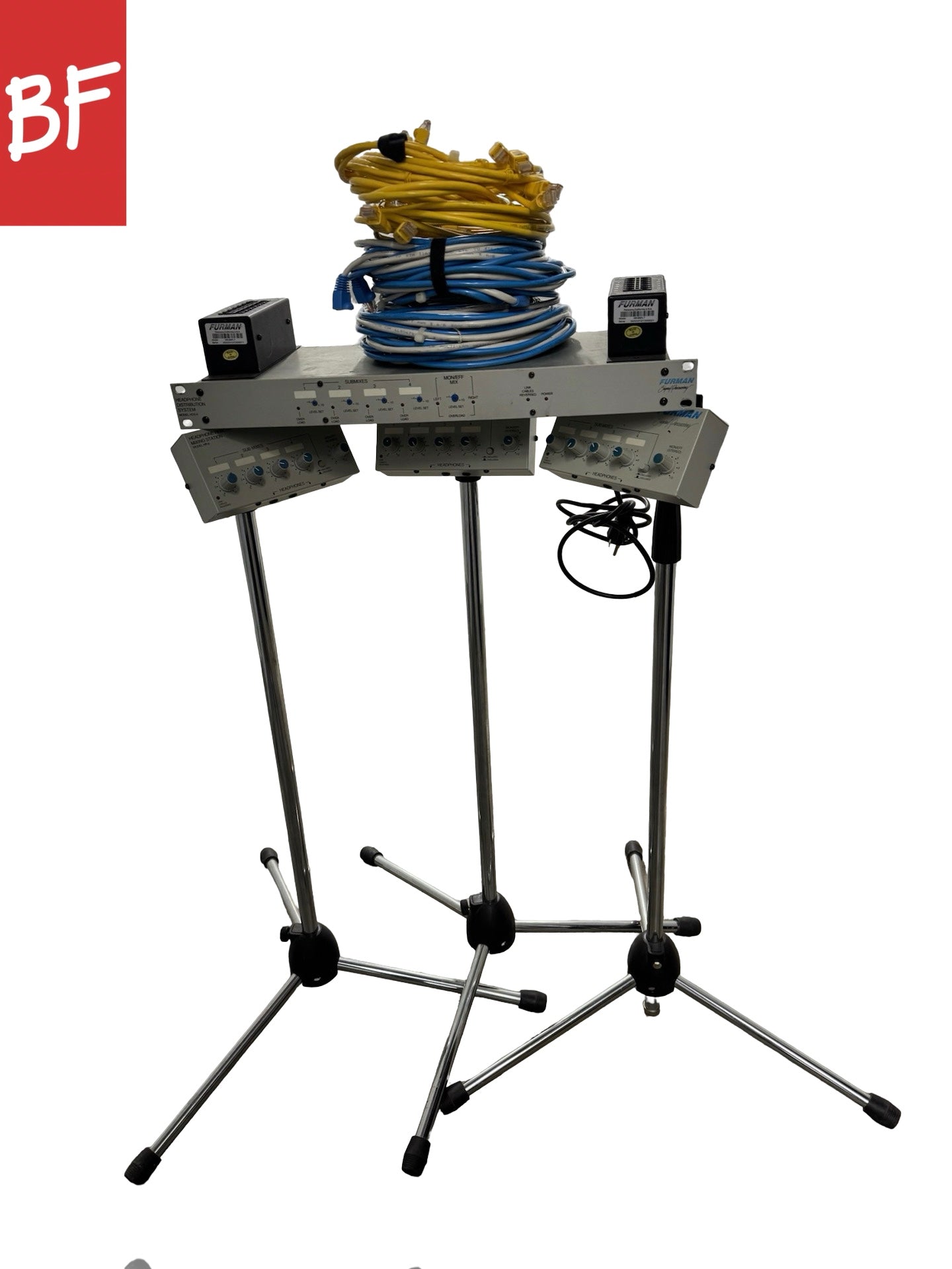 Very good condition! Very good headphone system for studios of all sizes. Great sounding headphone amp. 4 mono and 1 stereo input. Includes 3 HR-6 Remotes with stand clamps and mic stands, 3 pairs of ethernet cables, and 1 HR-6 SPLT breakout box.