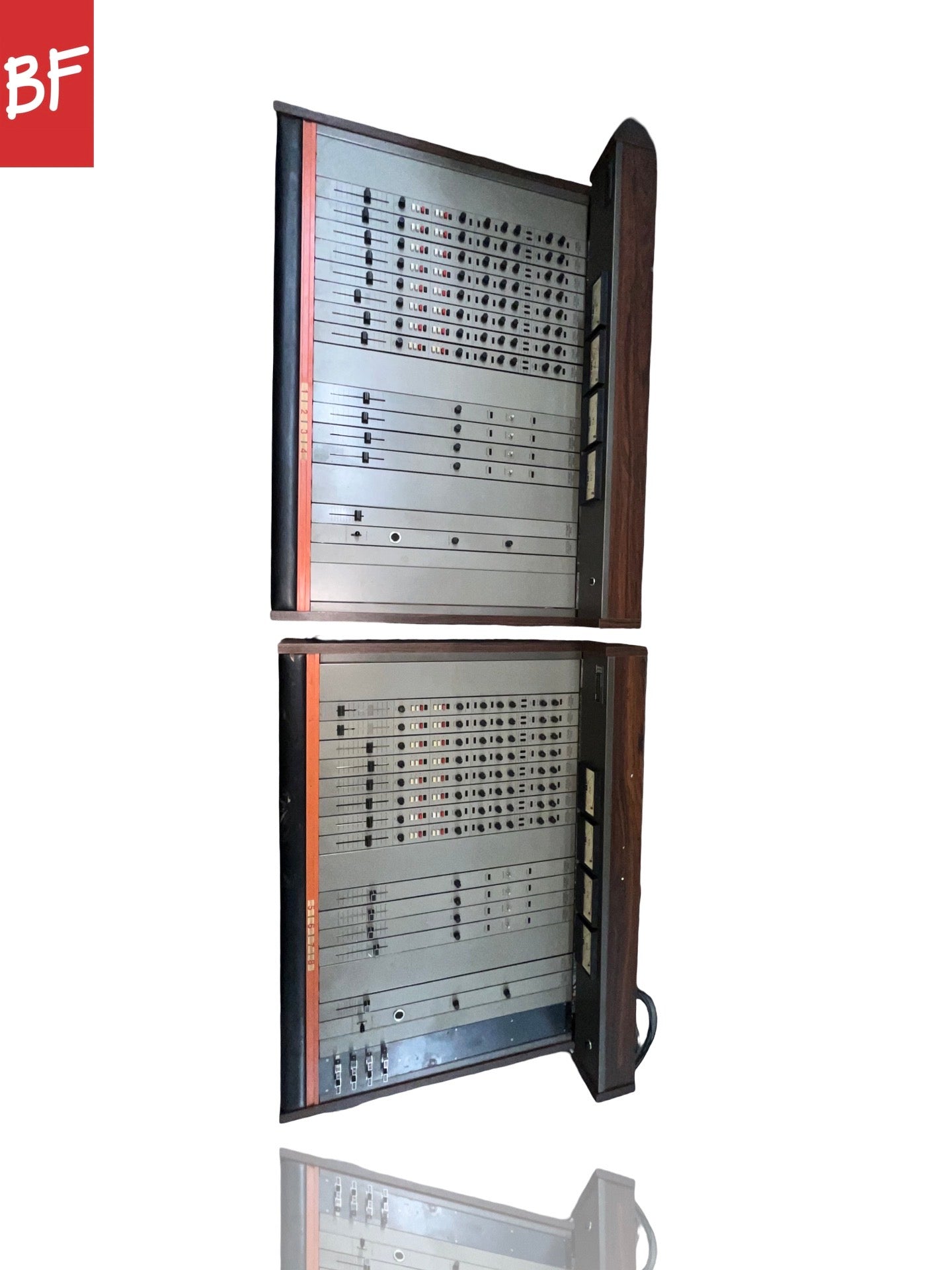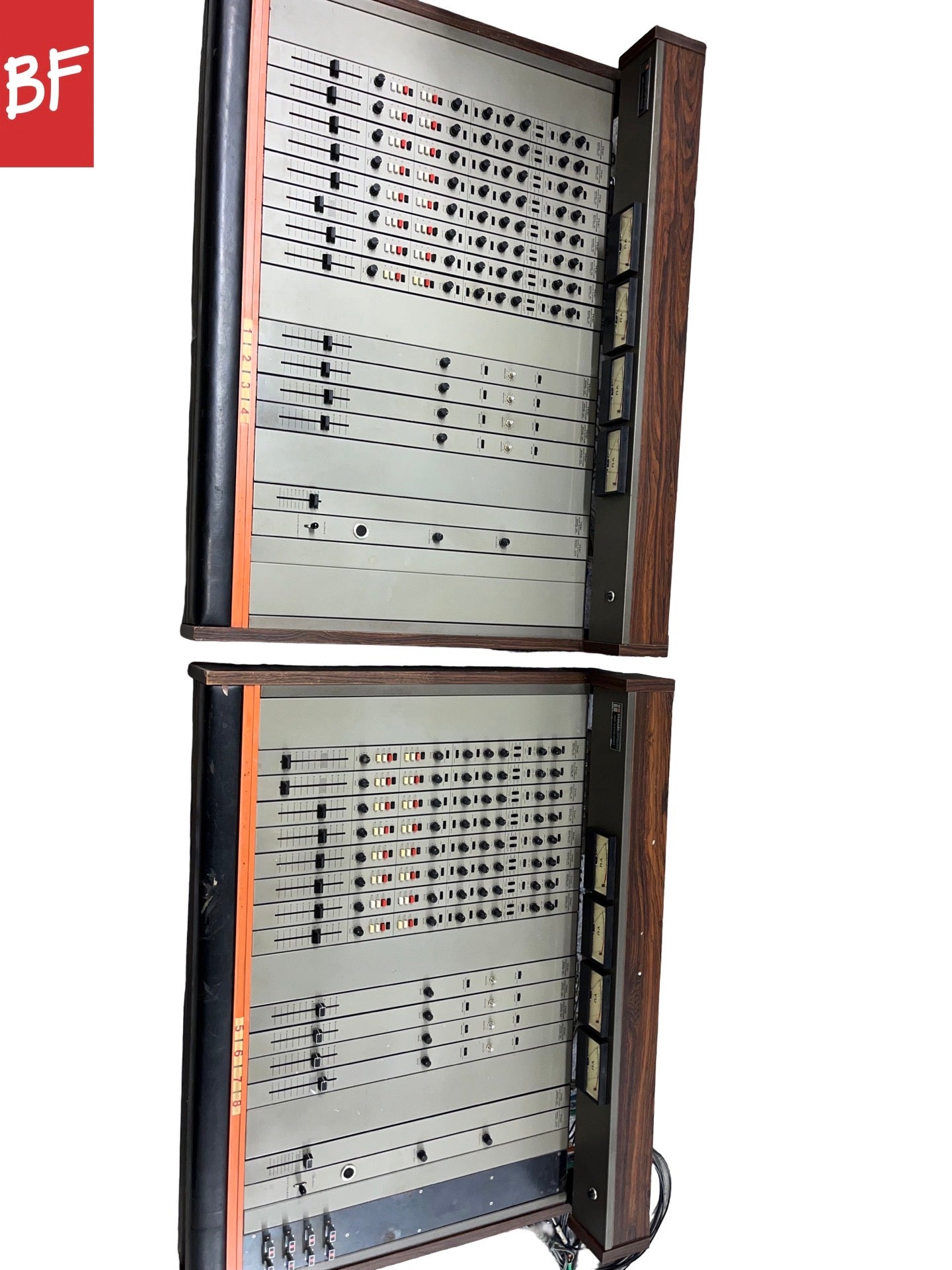 Good condition. This is a full vintage package with all the components needed for a cool analog tape studio. The consoles look to be in good shape. 1 console has been modified with switches on the right side.