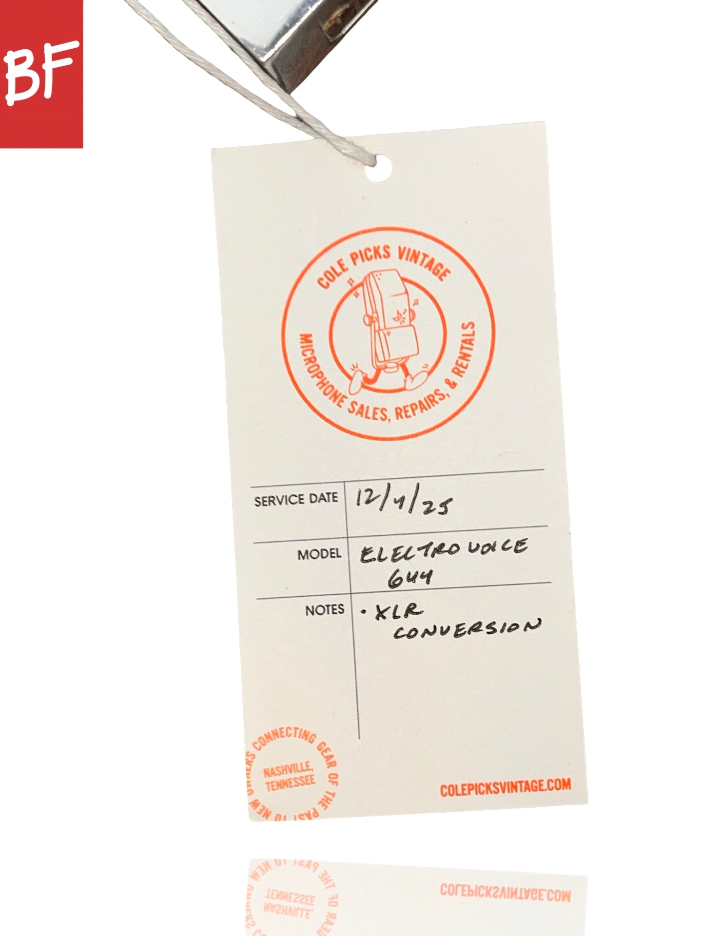 Great condition! Just serviced by Cole Picks Vintage with XLR conversion. Really cool vintage dynamic mic that has an extended pickup range 2.5 times an omni mic, has an internal windscreen, and excellent rear rejection. Great distant drum micing, room micing, sources that are far away, speech, crowd mics, and field recordings! Free shipping!