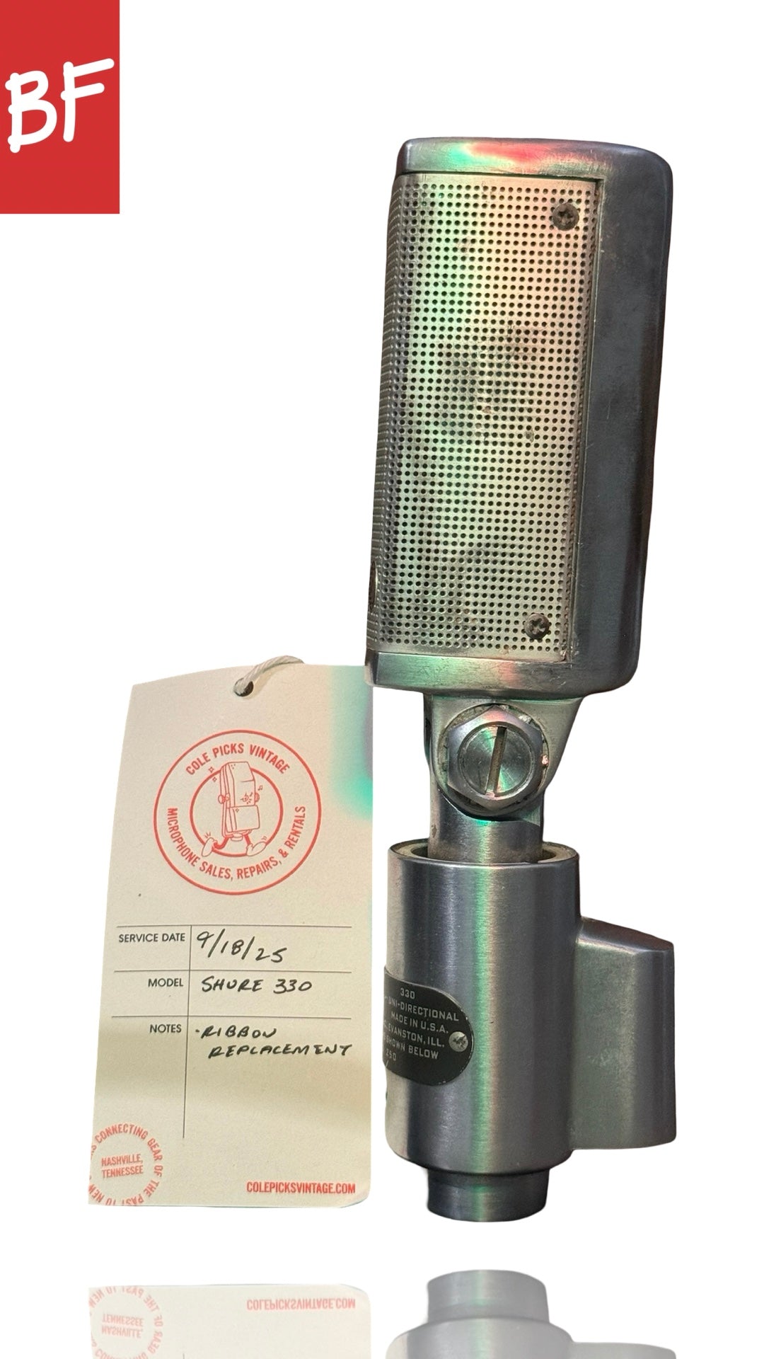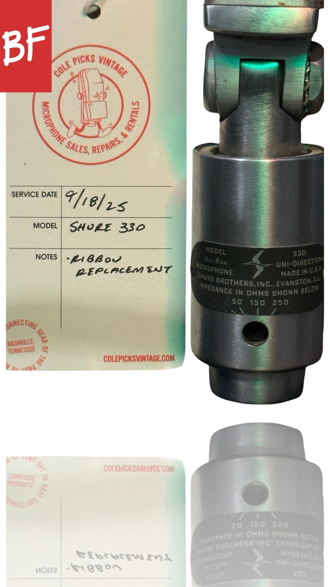 Great condition. Just serviced by Cole Picks Vintage with new ribbon. Supercardioid pattern which is unique and useful for a ribbon mic. XLR output.